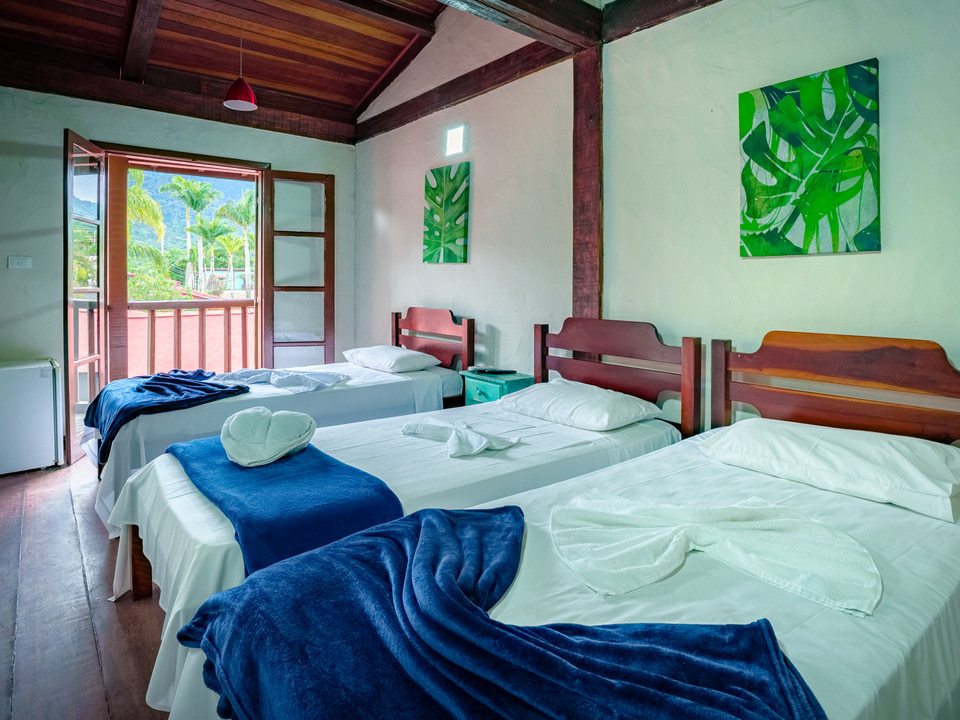 O Quarto Duplo Standard está localizado no primeiro andar superior, possui 20 m² e oferece varanda privativa.